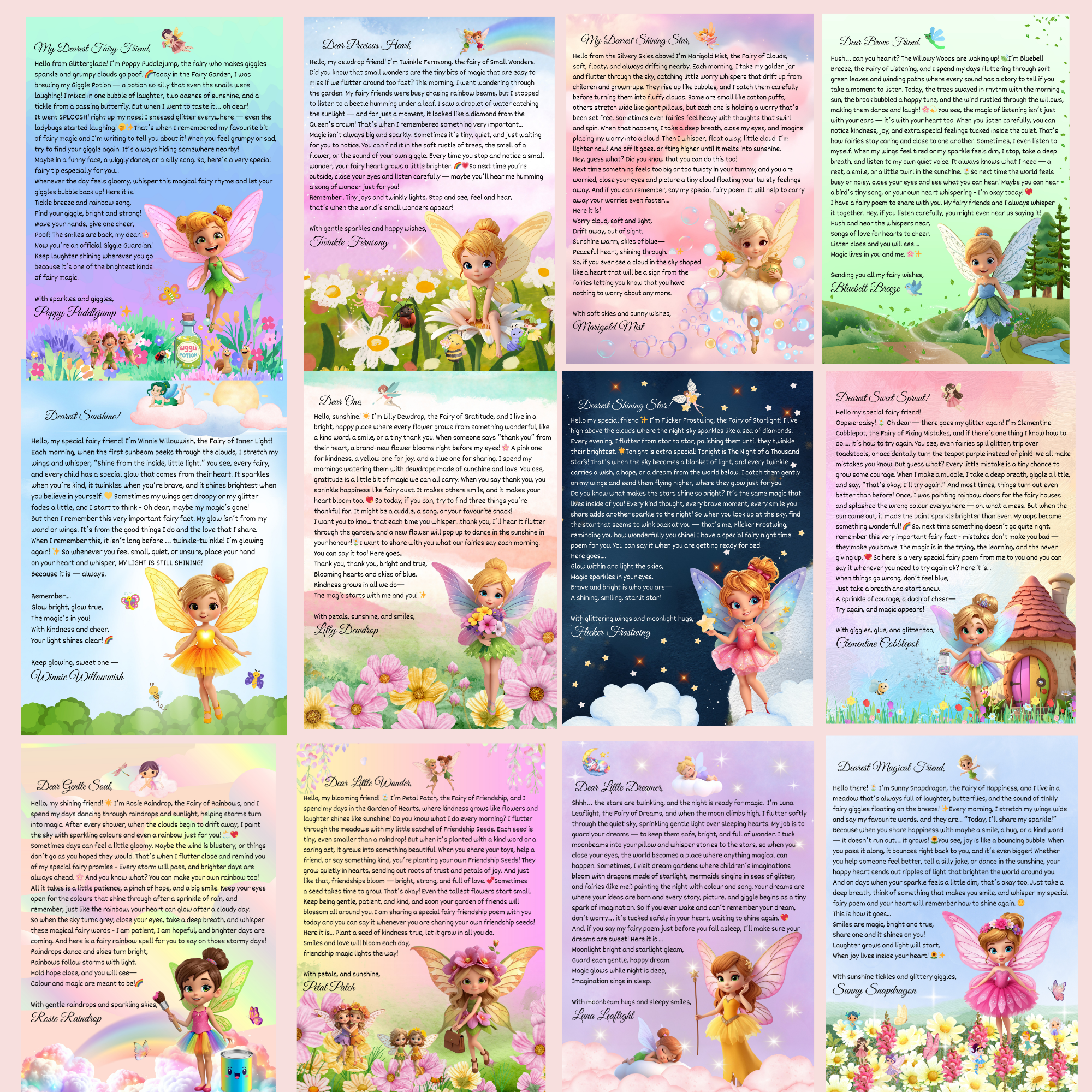 Each letter is filled with whimsical gentle life lessons, and playful tiny poems designed to inspire kindness, imagination, bravery, gratitude, and joy. Perfect for bedtime reading, encouragement, or as a unique magical gift for children.