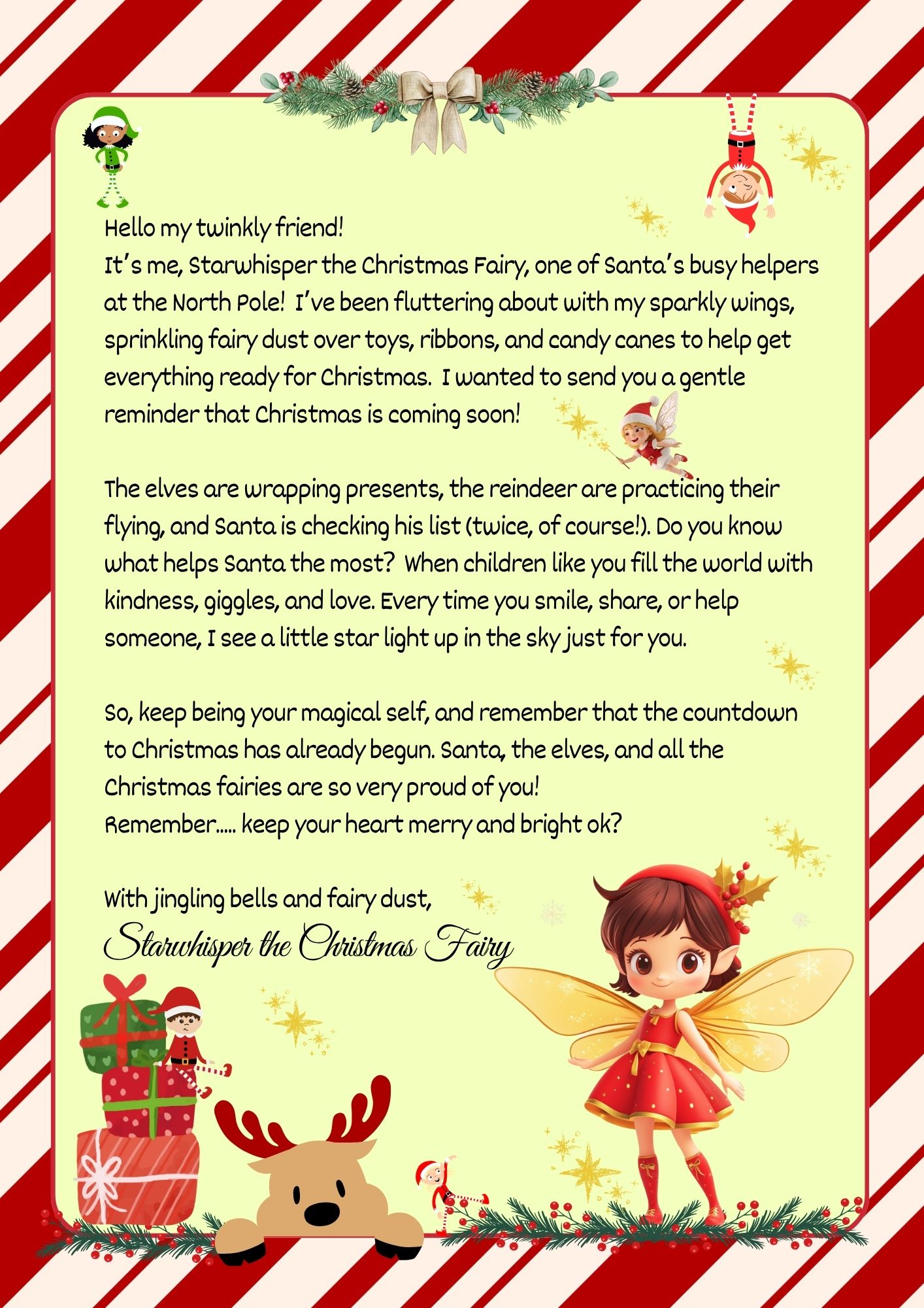 ✨ Add a sprinkle of North Pole magic this holiday season with a Printable Christmas Fairy Letter from Santa’s Helper-Starwhisper the Christmas Fairy ! 🌟 PLEASE NOTE – THIS IS A DIGITAL DOWNLOAD AND NO PHYSICAL ITEMS WILL BE SHIPPED.