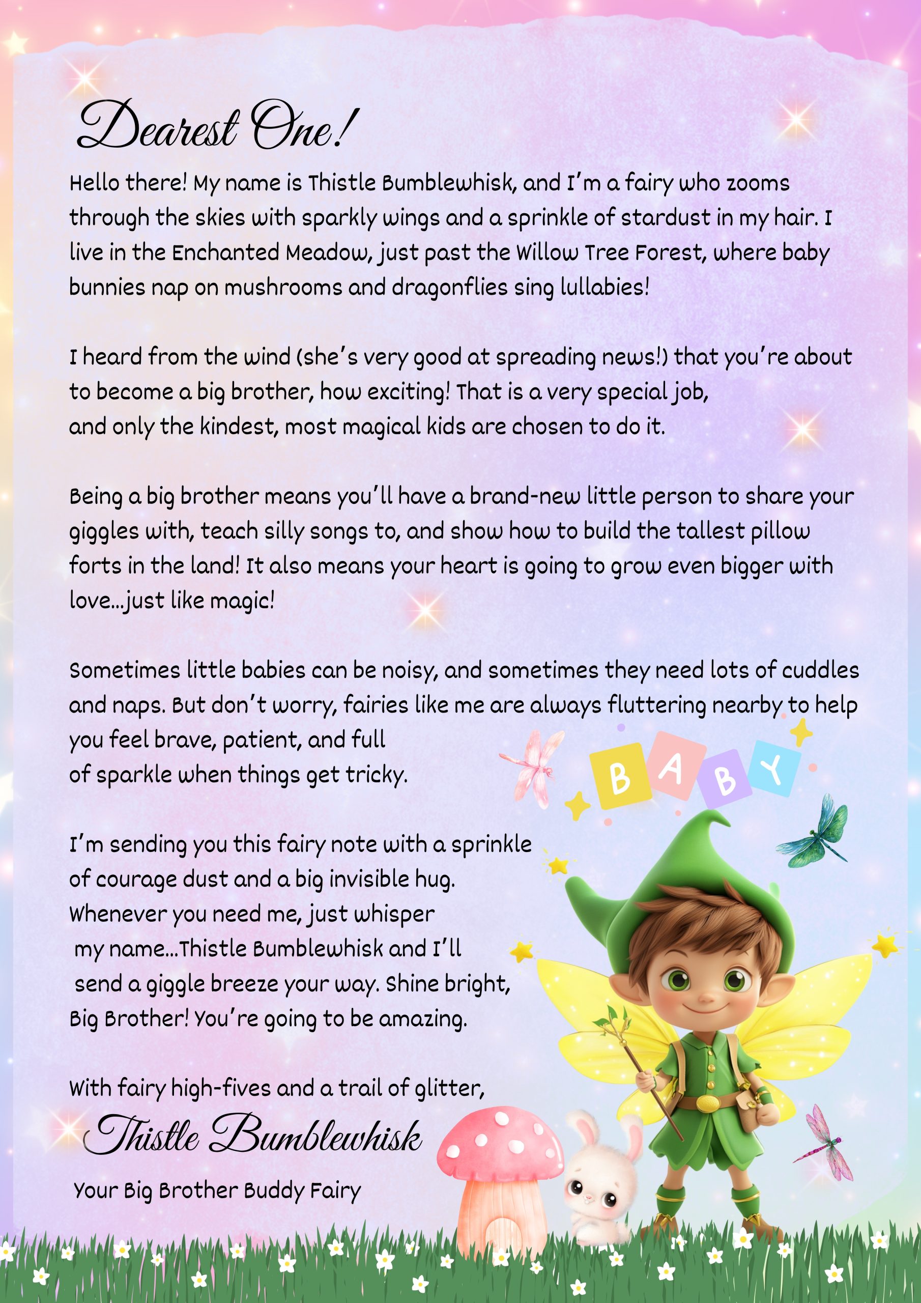New Baby Big Brother Fairy Letter From Thistle Bumblewhisk